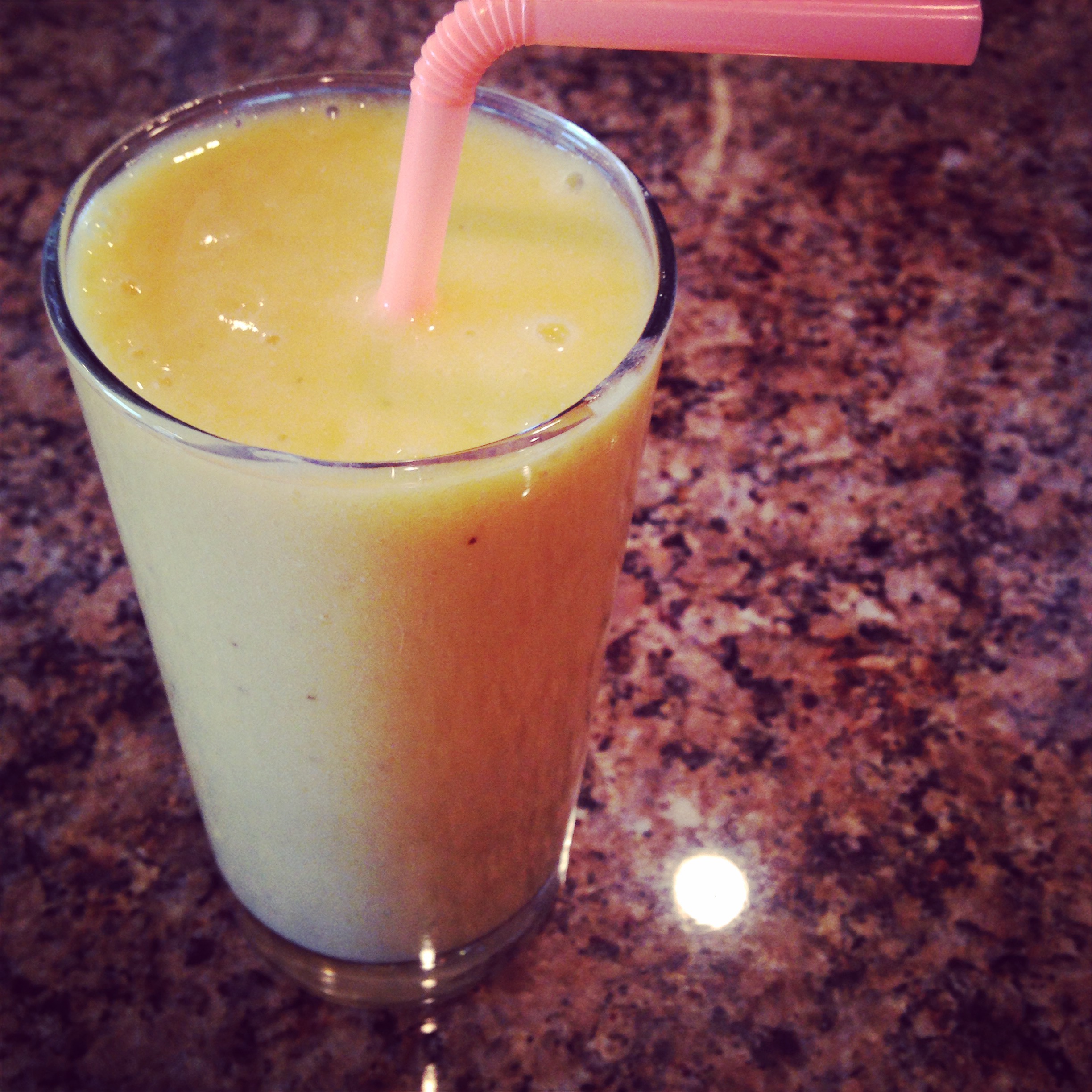For the smoothie I was talking about , you need : 1 medium banana, 1 cup frozen mango, 1 tbsp coconut oil, around 1 cup coconut water. Blend it all together and it is done. You will have a creamy , tasty and healthy smoothie in no time.